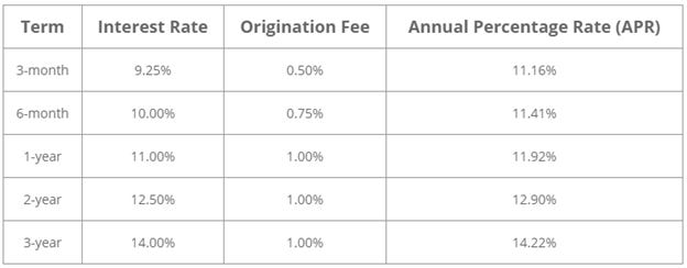 While the origination fee varies from 0.50 to 1.00 percent, it is important to remember that this fee is typically paid to compensate a lender for processing a loan. Nothing about this rate appears excessive, in my opinion. If you are unfamiliar with the idea of an origination fee, it is a percentage (as defined above) of the amount loaned not of the collateral pledged.